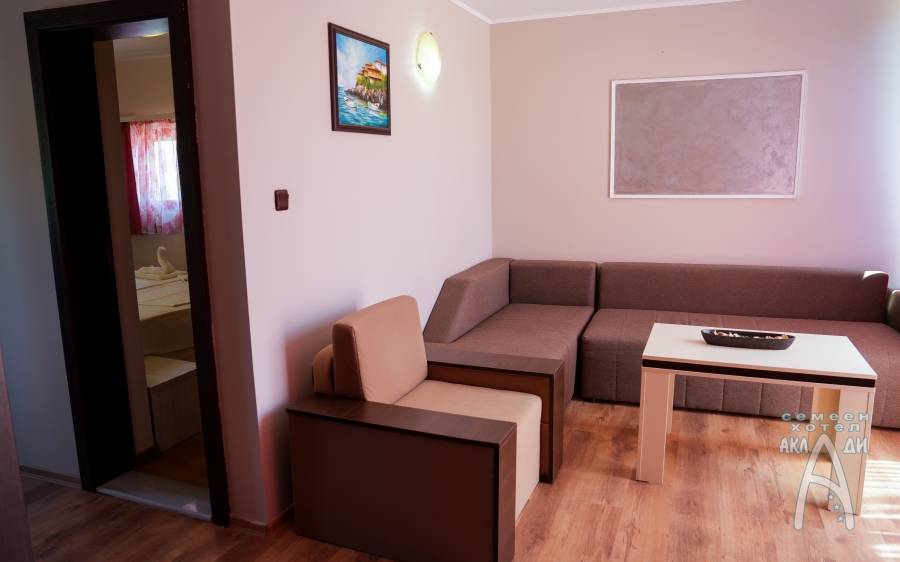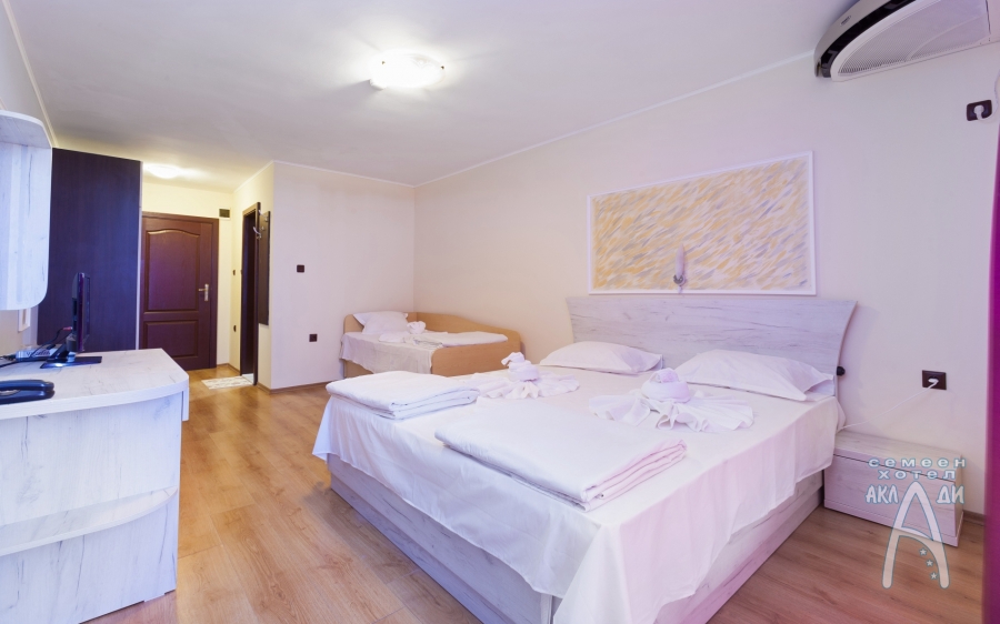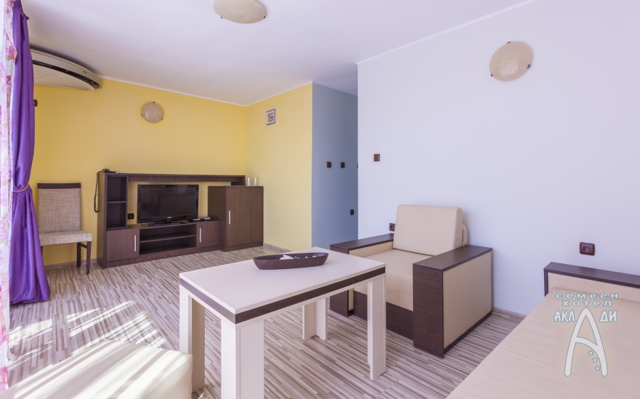 Семеен хотел „Аклади” разполага с 14 стаи, 2 апартамента и 1 панорамно студио. Всички помещения за настаняване са със собствен санитарен възел, хладилник, телевизор с плосък екран, интернет, климатик, кът за сядане и балкон с изглед към градината. В почти всички налични стаи има възможност за добавяне на допълнително легло.
